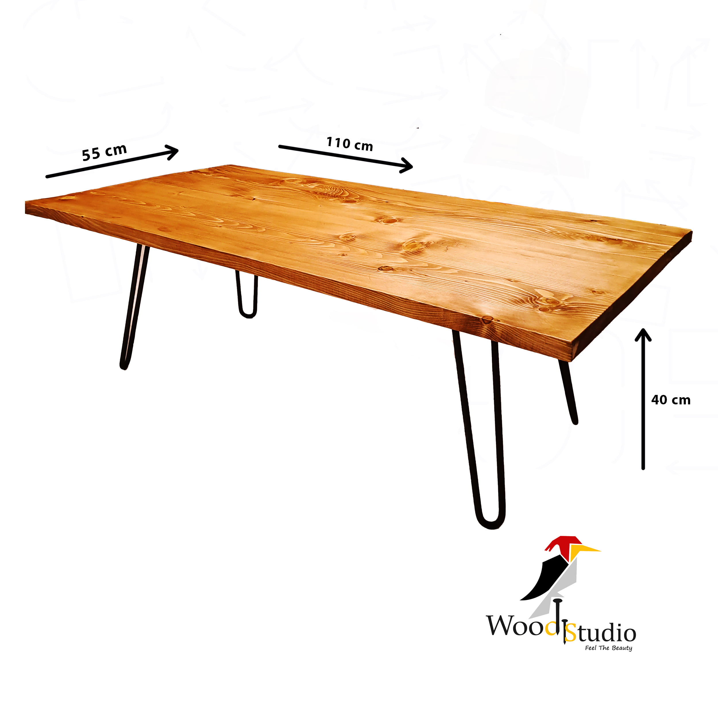 صفحه میز دارای ابعاد 55 در 110 سانتیمتر است، که اندازهای مناسب برای استفاده در جلوی مبلها و صندلیهاست. ارتفاع میز نیز 40 سانتیمتر است، که ارتفاعی مناسب برای دسترسی آسان به اجسام روی میز و همچنین استفاده راحت دارد.